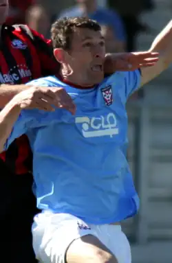 He was released at the end of the 2006–07 season, after only playing a small part in the club's promotion to the Championship. He subsequently signed for League Two side Lincoln City on a one-year contract on 27 June 2007,[2] but was loaned out to Conference Premier side Farsley Celtic on 20 November until 7 January 2008.[3] He was released by Lincoln on this date and joined Farsley on a permanent contract.[4] He later joined the backroom staff at the club.[5] He found himself consigned to the bench at the start of the 2008–09 season and, after making just two substitute appearances, moved on to North Ferriby United of the Northern Premier League Premier Division.[6] He made his Ferriby debut as a substitute in a 2–1 home defeat to Kendal Town on 6 September 2008.[7] With Ferriby he made 23 appearances and scored five goals in all competitions.[7]