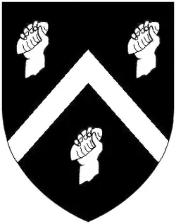 - Sir Henry Rolle (1545–1625), eldest son, married firstly Elizabeth Watts, daughter and heiress of Roger Watts of Somerset, secondly a Fortescue, daughter of John Fortescue (1525–1595) of Fallapit,[13] East Allington by his wife Honor Speccot (died 1606),[14] whose monumental brasses exist in East Allington Church.[15] His Exeter townhouse was the "Abbot's Lodge" (destroyed in 1942 during World War II bombing), in Cathedral Close within the precincts of Exeter Cathedral. He made alterations to that house and added decorative heraldic plaster escutcheons dated 1602, one of which showed Rolle impaling Watts, of six quarters (1st & 6th Watts: Argent, on a fesse vert between three eagle's heads erased sable as many crosses sarcelly of the first, the arms of Sir John Watts (died 1616), Lord Mayor of London in 1606)[16] the other Rolle impaling Fortescue.[17] The house had been the townhouse of the Abbot of Buckfast Abbey, which Abbey and much of its lands, including the Abbot's Lodge, had been acquired in 1545 by the patriarch George Rolle (d.1552) following the dissolution of the monasteries.[18] It had been used by George Rolle as his townhouse, by the name of "Buckfast Place" and was the place of his death in 1552. In 1609 he purchased from William Howard, 3rd Baron Howard of Effingham (1577–1615) several of the larger former holdings of Barnstaple Priory in Pilton and Bradiford, whose family had held the lands since the Dissolution of the Monasteries.[19]