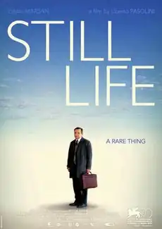 Still Life is a 2013 drama film written and directed by Uberto Pasolini.[1][2] The film was presented at the 70th Venice Film Festival, where it won the award for Best Director in the category "Orizzonti".[3] At the Reykjavik International Film Festival, Still Life received the top award (Golden Puffin) as well as the FIPRESCI Award.[4] It also received the Black Pearl award (the highest award) at the Abu Dhabi Film Festival for "its humanity, empathy and grace in treating grief, solitude and death"; for his performance, Eddie Marsan won the Best British Actor award at the 2014 Edinburgh International Film Festival.[5]