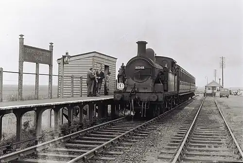 Stoke Junction Halt (TQ 843 756 51°26′57″N 0°39′02″E / 51.449247°N 0.650680°E) was a halt on the Hundred of Hoo Railway between Middle Stoke Halt and Grain Crossing Halt, it was also at the junction of the line to Allhallows-on-Sea. It was opened on 17 July 1932 and closed on 4 December 1961.[1][2]