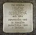 TEREZIE GESSLEROVÁ BORN 1884 DEPORTED 1942 TO THERESIENSTADT MURDERED 1944 IN AUSCHWITZ |