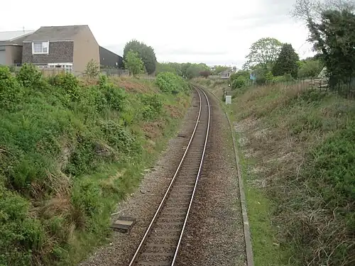 ![]() The site of the station, looking north towards Dyce, in 2017 | |||||