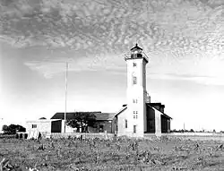 The Stony Point (Henderson) Light is a lighthouse on the shore of Lake Ontario near Henderson Bay in New York. The site was established in 1826, and the original lighthouse was lit in 1869. The light and attached keeper's quarters are currently privately owned. A new light was built in 1945, and it was automated in 1950. This light is maintained by the US Coast Guard. The site is not open to the public.[1]