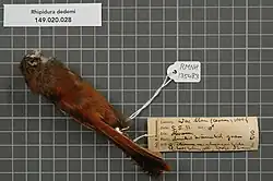 - ^ BirdLife International (2016). "Rhipidura dedemi". IUCN Red List of Threatened Species. 2016: e.T22706890A94095567. doi:10.2305/IUCN.UK.2016-3.RLTS.T22706890A94095567.en. Retrieved 12 November 2021.