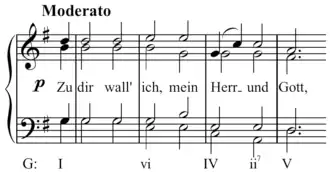 Amongst the primary roles played by the submediant chord is that in the deceptive cadence, V(7)–vi in major or V(7)–VI in minor.[4][5] In a submediant chord, the third may be doubled.[6]