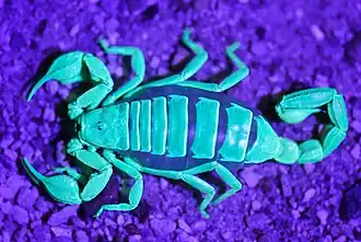 - ^ Stachel SJ, Stockwell SA, Van Vranken DL (August 1999). "The fluorescence of scorpions and cataractogenesis". Chemistry & Biology. 6 (8): 531–539. doi:10.1016/S1074-5521(99)80085-4. PMID 10421760.