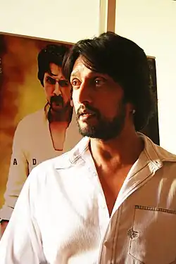 Sudeepa is an Indian actor, director, producer, screenwriter, and television presenter who primarily works in the Kannada film industry, in addition to having worked in Hindi, Telugu and Tamil films. He is popularly known as Kiccha Sudeepa. Sudeep began his acting career with supporting roles in Thayavva (1997), and Prathyartha (1999), before making his breakthrough with a leading role in the romance Sparsha (2000). He established himself in the criticially acclaimed Huchcha (2001), which his performance in earned him the nickname "Kiccha Sudeepa" by his fans. He has gone onto star in several commercially successful films such as Nandhi (2002), Kiccha (2003), Swathi Muthu (2003), My Autograph (2006), No 73, Shanthi Nivasa (2007), Mussanjemaatu (2008), Veera Madakari (2009), Just Maath Maathalli (2010), Rakta Charitra (2010), Vishnuvardhana (2011), Kempe Gowda (2011), Eega (2012), Maanikya (2014), Ranna (2015), Kotigobba 2 (2016), Hebbuli (2017), The Villain (2018), Sye Raa Narasimha Reddy (2019), Pailwaan (2019), and Vikrant Rona (2022).