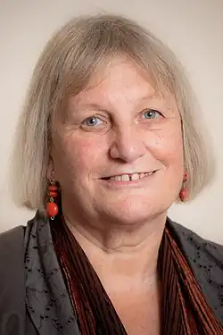 Susan Linda Essex[1][2] (née Lines)[3] was born on 29 August 1945 in Derbyshire, England.[j] She was raised in Tottenham, North London,[5] in what she later described as "[what] would be seen as quite poor circumstances – poor financially, not poor spiritually [...] we lived in a two-room terraced house with the toilet at the end of the garden and no running water."[6] She studied at the University of Leicester, where she graduated with BA Hons in geography.[4] At university, she was active in the Anti-Apartheid Movement and joined the Labour Party.[6] She also met fellow student Richard Essex, who she later married on 9 September 1967.[4][5] They have two children, including a son and a daughter.[7][4]