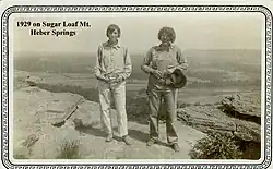Sugarloaf Mountain is located on a section line, and consequently, land transactions have always been conducted in two parcels. For several years, beginning in 1901, the Lucas brothers, Creighton and Richard, maintained a mining claim on the north side of Sugarloaf Mountain, but no ore or oil was discovered. In 1922 L.E. Robbins of Heber Springs, Arkansas purchased 40 acres (160,000 m2) on the south of the mountain along with other land from Richard R. Lucas. In 1951 he acquired a clear title to the 40 acres (160,000 m2) on the north side by patent from the United States government. In the same year of the patent, Robbins and his wife Dotte dedicated 80 acres (320,000 m2) to the town of Heber Springs in a 99-year lease. The lease specified that the land was to be used as a public park and picnic ground, and that the town should have the right to build barbecue grills, tables and benches; it also specified that no lumber should be cut except as prescribed by the Arkansas Forestry Commission, and then only by the grantors or their heirs.[1]