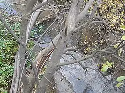 Raspberry, birch, oak trees, manchurian walnut grow near the creek.[1]