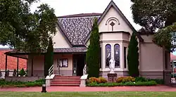 There are a number of places of worship in Summer Hill. St Patrick's Catholic Church was built in 1874, and is the oldest known building in the suburb. There is also a small primary school associated with the church and located next to it. The building was originally a private home known as Kelvin Grove, and owned by Mrs Jane Drynan. Much of the exterior of the church is original but none of the internal walls were retained when the building was converted into a church. Following Drynan's death, Kelvin Grove was owned or leased by a succession of different people, including the Haberfield real-estate developer Richard Stanton, Croydon brick-maker William Downton, and two sisters named Freeman (one of whom was a nurse). In the 1920s and 1930s Kelvin Grove may have been used as a nursing home. The first mass was celebrated in Kelvin Grove on St Patrick's day 1946, giving the church its name.[6]