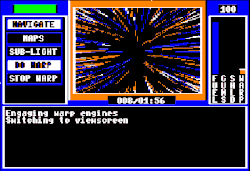 Getting safely to other planets is another matter, however. The merchant space avenues abound with pirates eager to rob merchant vessels, like the SunDog. The SunDog's warp drive only works reliably at the edges of a star system. So the player must travel outwards, warp and then travel back in to land on a planet, giving plenty of opportunity for pirates to attack.