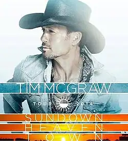 The Sundown Heaven Town Tour was the tenth headlining concert tour by American country music artist, Tim McGraw. The tour was in support of his thirteenth studio album, Sundown Heaven Town (2014). It began on May 9, 2014, and finished on November 8, 2014.