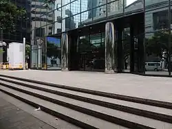 There was a large open space around the buildings, creating an "urban oasis" for the dense Causeway Bay area. A scene of John Woo's movie A Better Tomorrow was filmed at the space before the entrance of Sunning Plaza.