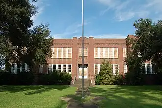 The current Sunset High School building was completed in 1926, and featured a two-story brick masonry structure.[2] Its National Register nomination stated "Although the building's exterior does exhibit a few low-key decorative features, the school should be classified as having 'no style' for the purposes of this nomination." It was, however, deemed "significant in the area of education because its 1926 construction represents the 'coming of age' of public education in southwestern St. Landry Parish."[2]