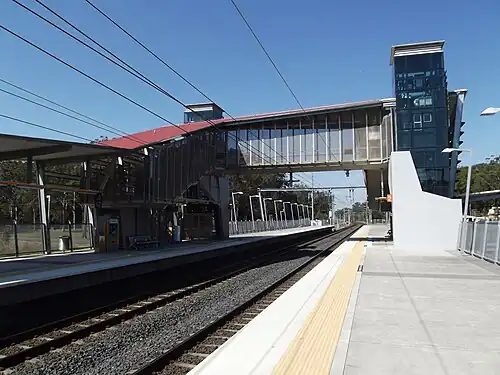 On 14 April 2009, a new 14-kilometre (8.7 mi) double-track alignment from Caboolture to Beerburrum opened. A four kilometre section of the old line immediately north of Caboolture was retained for use as a passing loop, with the remainder of the old line lifted. This saw new stations at Elimbah and Beerburrum built. Glasshouse Mountains, Beerwah and Landsborough stations have all received major work including platform extensions and lifts.[4][5] The line is scheduled to be duplicated to Landsborough by 2021.[6]