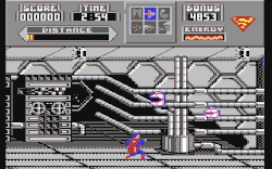 The fourth is another side-scrolling level. Set inside the satellite, Superman must battle the faulty Robot Defence System which has mistaken Superman for an enemy intruder.