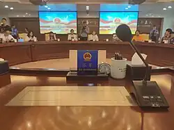 The Supreme People's Procuratorate is led by a Procuratorial Committee, which oversees the operation of the Procuratorate under the direction of the Prosecutor-General.[2] The agency is further organised into ten prosecutor's offices, which each oversee a specific type of crime or litigation.[9][25] Various additional departments, such as the Political Work Department, also exist within the Procuratorate, to oversee additional affairs.[26] Several subordinate institutions are also directly affiliated with the Procuratorate.[26]