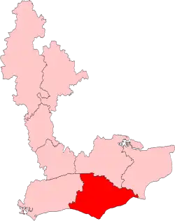 When it was created in England in 1979, it consisted of the Westminster Parliament constituencies of Brighton Kemptown, Brighton Pavilion, Eastbourne, East Grinstead, Hastings, Hove, Lewes, and Rye.[1] In 1984 it consisted of Bexhill and Battle, Brighton Kemptown, Brighton Pavilion, Eastbourne, Hastings and Rye, Hove, Lewes, and Wealden.