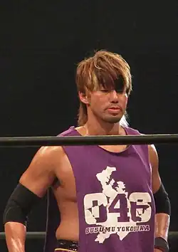 Susumu Mochizuki (望月享, Mochizuki Susumu; born February 18, 1978), better known by his ring name Susumu Yokosuka (横須賀ススム, Yokosuka Susumu) is a Japanese professional wrestler currently signed to Dragon Gate. He is not related to fellow Dragon Gate wrestler and long-term ally/rival Masaaki Mochizuki, who debuted much earlier for WAR.