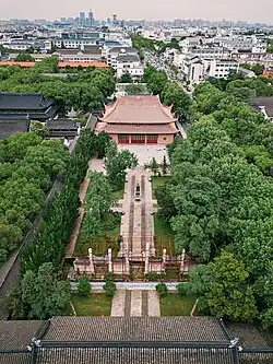Suzhou Confucian Temple is located in the central part of Suzhou, Jiangsu province, China. Built by the order of Fan Zhongyan, then the Prefect of Suzhou, it stands across from the street with Garden of Surging Wave Pavilion.[2] In 1035, Fan Zhongyan was the Prefect of Suzhou. He combined the State School and the Confucian Temple, which began the State education. The system was imitated by other places, for which it got the saying "State education began from Wu County".[3] Suzhou Temple School had been extended several times, so presently, it takes up a large area. According to the record of County Wu, it had 213 rooms during the Southern Song dynasty (in 1241). In its day, it had classrooms, dormitoroes, exam rooms and canteens, besides the hall and temple. Suzhou Temple School also had gardening architecture, for instance, rockery, pond, bridge and pavilion. Its scale is the biggest among schools in the southeast.