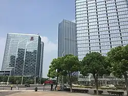 Suzhou Dushu Lake Higher Education Town (Chinese: 苏州独墅湖高等教育区) is a university town located in the Southern part of Suzhou Industrial Park, Suzhou, Jiangsu, to the East of Dushu Lake,[1] and to the South of Wusong River. It has a total area of 25 km2, and expects to have around 400,000 people by 2016, 100,000 of whom will be students. Its goal is to offer good education, advanced technology, and a pleasant living environment. The area is home to many universities (undergraduate as well as graduate schools) including local Chinese universities and universities from other countries. This community focuses on producing educated and creative people.[2] The area offers facilities including libraries, entertainment venues, parks, a sports centre and accommodation. Wenxing Plaza and Hanlin Plaza are popular locations of many small restaurants and shops. Dushu Lake Library is an experimental library of the National Digital Library.