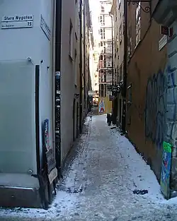 - ^ "Innerstaden: Gamla stan". Stockholms gatunamn (in Swedish) (2nd ed.). Stockholm: Kommittén för Stockholmsforskning. 1992. p. 76. ISBN 91-7031-042-4.