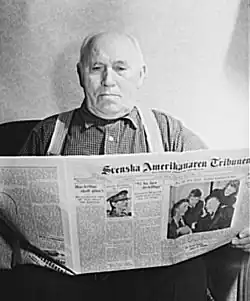 Svenska Amerikanaren Tribunen A Swedish-American in Minnesota reading the news, April 1942. |