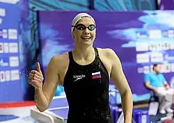 Svetlana Mikhailovna Chimrova (Russian: Светлана Михайловна Чимрова; born 15 April 1996) is a Russian swimmer. She competed in the women's 100 metre butterfly event at the 2016 Summer Olympics.[2] In 2020, Chimrova took part in the International Swimming League as a member of the US-based team New York Breakers.[3]