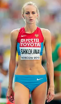 Shkolina initially won the bronze medal in the high jump at the 2012 Summer Olympics with a height of 2.03 m.[5] She initially won the gold medal in the high jump at the 2013 World Championships in Athletics in Moscow, equalling her personal best with a height of 2.03 m.