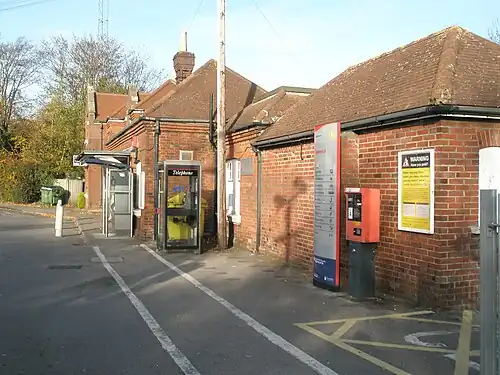 The station opened on 2 September 1889,[1] and was specially built for the local strawberry industry. For a short time each year, it was one of the busiest stations in the country.[2] The station is near a small industrial estate between the residential areas of Locks Heath and Whiteley.