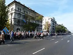 In 2013 and 2014, thousands of ethnic Hungarians marched for autonomy on 10 March (on the Székely Freedom Day) in Târgu Mureș, Romania.[34] 10 March is the anniversary of the execution in Târgu Mureș in 1854, by the Austrian authorities, of three Székelys who tried to achieve national self-determination.[35] Since 2015, the Székelys also have the Székely Autonomy Day, celebrated every last Sunday of October.[36]