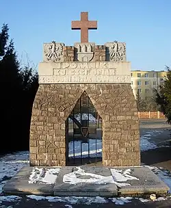 The monument has been unveiled on 25 September 1993, at the initiative of the Association of Szwederowo's Friends (Polish: Koło Miłośników Szwederowa) and the Society of the Friends of Bydgoszcz (Polish: Towarzystwo Miłośników Miasta Bydgoszczy): it is standing at 26 Maria Konopnicka street and has been officially dedicated by Ryszard Pruczkowski, priest from the neighbouring parish of Corpus Christi.[60]