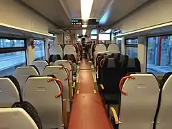 The modernization is so thorough that these are practically totally new trains.[9] Modernization includes: totally new interiors, new seats, new lighting, new windows; new heating systems with thermostats to regulate temperature, new thermal insulation; new toilets; new information displays; and features providing accessibility for handicapped persons. The car exteriors, and the exterior of the driver's cab, have a totally new appearance. Electrical and mechanical changes include totally new propulsion systems, using modern AC motors fed by AC inverters, providing smoother acceleration, energy savings by returning braking energy to the power supply, and a higher top speed of 120 km/h (75 mph).[10]