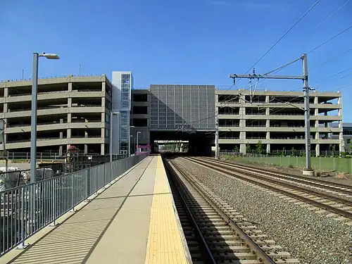 The station's ceremonial groundbreaking took place on July 17, 2006, but construction was delayed by negotiations with Amtrak over the agreement to allow the MBTA to run commuter trains on Amtrak-owned tracks.[4] Site preparation began in September 2007 and construction began in late 2008 or early 2009.[8][9] The station was originally scheduled to open in late 2010, and construction was completed on schedule, with the opening ceremony taking place on October 27, 2010.[4]