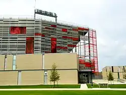 On August 25, 2016, the University of Houston System Board of Regents authorized the design and construction of an indoor practice facility.[57] The structure houses a temperature-controlled indoor practice facility with a full-size synthetic turf field and an auxiliary area dedicated for a future buildout of a football-only weight room. Construction on the $20 million facility began following the 2016 season and was completed in the fall of 2017. The facility is located near the northwest corner of the stadium, next to the stadium parking garage.