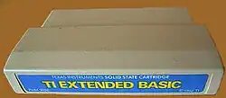 TI BASIC was located in the system's internal ROMs. In 1981, TI released a plug-in ROM cartridge that added additional functions to the existing code, improving the language in a number of ways.[18] Known as Extended BASIC, it was a highly anticipated addition to the platform.[19]