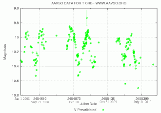 - AAVSO: Check Recent Observations (get recent magnitude estimates for T CrB)