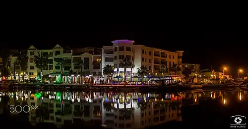 Tabarka (Arabic: طبرقة ) is a coastal town located in north-western ⓘTunisia, close to the border with Algeria. Tabarka was occupied at various times by Punics, Greeks, Romans, Arabs, Genoese and Ottomans. The town is dominated by an offshore rock on which there remains a Genoese castle. Nationalist leader Habib Bourguiba, later president of post-independence Tunisia, was exiled on Tabarka by the French colonial authorities in 1952.[1] Tourist attractions include coral fishing, the Coralis Festival of underwater photography,[2] and its annual jazz festival.[3]