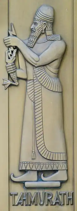 Tahmuras or Tahmures (Persian: تهمورث, طهمورث [tʰæmures]; from Avestan Taxma Urupi "Strong Fox" via Middle Persian: 𐮑𐮇𐮋𐮅𐮊𐮎𐮀, romanized: Tahmōref) was the third Shah of the mythical Pishdadian dynasty of Iran according to Ferdowsi's epic poem, the Shahnameh. He is considered the builder of Merv.