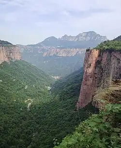Taihangshan Gorge (simplified Chinese: 太行山大峡谷; traditional Chinese: 太行山大峽谷; pinyin: Tàihángshān Dàxiágǔ) is located in the Shanxi province of China. It is a famous scenic spot, and has been honoured as one of the top ten gorges of China. It is a part of Taihangshan Valley National Forest Park, which covers 44 beauty spots and includes cliffs, forests and temples.