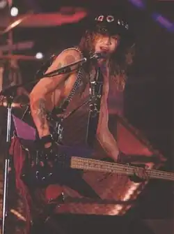 After dropping out of high school in 1982, Taiji continued to play guitar in the band Trash, which he had formed with classmates.[12] One of the members was future Ladies Room vocalist Hyaku.[13] Since the other members were still in school, Taiji paid most of their studio-rental expenses with money from his part-time job making signs. They broke up after one year.[12] After meeting the leader of the heavy metal band Dementia at a studio, Taiji was invited to join them at the age of 17.[12] He switched to bass and adopted the stage name "Ray".[14] At his mother's request, he left home and became a live-in employee at the love hotel in Shibuya where he worked part-time.[15] After a year, which saw the release of Dementia Live!, Taiji quit the group.[15][13] In his autobiography, Taiji writes that he had visions of forming a band named Dead Wire, but there were no other members and only a single song was written, which was performed by his friend Tetsu's band Saver Tiger.[16] However, some sources state that Tetsu and his fellow Saver Tiger and D'erlanger bandmate Kyo were actual members of the short-lived Dead Wire.[13] Taiji then played briefly with the heavy metal band Prowler for about three months.[13][17]