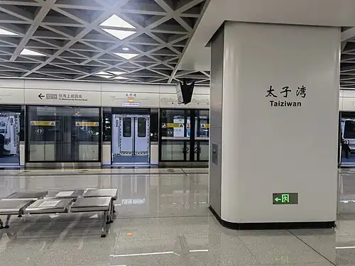 Taiziwan station (Chinese: 太子湾站; pinyin: Tàizǐ Wān; Jyutping: taai3 zi2 waan1) is a metro station on Line 12 of Shenzhen Metro. It was opened on 28 November 2022.[1][2]