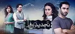 Tajdeed-e-Wafa (Urdu: تجدیدِ وفا, lit. 'Renewal of Loyalty') was a Pakistani drama produced by Momina Duraid under their banner MD Productions. It was directed by Ilyas Kashmiri, written by Samira Fazal, and starred Ainy Jaffry, Ahmed Ali, Naveen Waqar, and Haroon Shahid.[1][2][3][4][5]