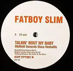 "Talkin' bout My Baby" (or "Talking 'bout My Baby") is a song by English big beat musician Fatboy Slim, released in 2002 as a single from his third studio album Halfway Between the Gutter and the Stars. The 12" single released for the song contained a remix of "Drop the Hate" as its b-side. Upon its release, it peaked at No. 92 on the UK Singles Chart. The vocal samples are taken from the Wet Willie recording "Macon Hambone Blues".[1]