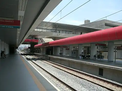 The original Tamanduateí station was deactivated on 21 September 2010, being replaced by the current one, built 100 metres (330 ft) away from the old station. With the construction of the new train and metro station, the old building was demolished.[3] The new station was built to attend the CPTM Line 10-Turquoise, as well as the Metro Line 2-Green, with the Metro platforms being elevated. A proposal made by State Deputy Edson Ferrarini (PROS) was published to rename the station to Tamanduateí-Imperador do Ipiranga, but then-Governor Alberto Goldman vetoed the project and the Legislative Assembly confirmed the veto, archiving the project.[4]