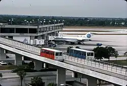 An automated monorail system also once connected the main terminal on Level 5 to the long-term parking garage,[20] stopping at each elevator bank in both buildings. It was installed in 1991 when the long-term parking garage was built.[10] It used six Bombardier UM III vehicles (known today as the Innovia Monorail 100), which are also used on the Jacksonville Skyway.[1]