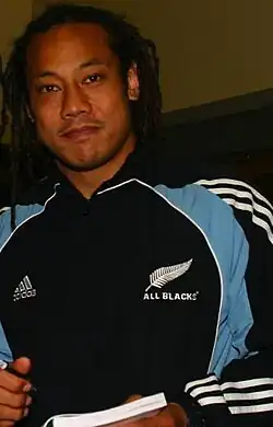 He played for the Hurricanes from Super 12's inception in 1996 and took over the captaincy in 2003. Graham Henry named him as All Blacks captain in 2004; under his leadership the All Blacks won 19 of their 22 games including the clean sweep of the British & Irish Lions and the Grand Slam in 2005. At the end of 2005, after 74 Test caps (where he scored 36 tries), Umaga retired from international rugby.[1] Umaga played four games in 2007 for the Wellington Lions in the Air New Zealand Cup, to play 100 matches for the province, before taking up the position of coach at Toulon.[2]