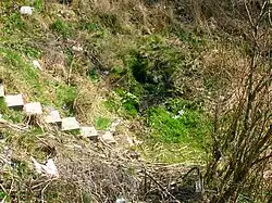 This well is noted on the 1856 OS map as accessed by a path that divides from the lane leading to the washing house shortly after entering the Golf Field. No indication is given, but the water supplying the well and washing house may have the same source, however as the well was still in use the waste water from the washing house would have a different outflow so as not to pollute the well water.[5]