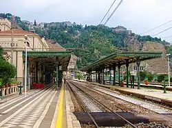 Taormina–Giardini railway station (Italian: Stazione di Taormina–Giardini or Taormina–Giardini, signed as Taormina–Giardini Naxos) is a historic railway station in the Italian municipality of Taormina in Sicily. It is owned by the Ferrovie dello Stato, the national rail company of Italy.[2]